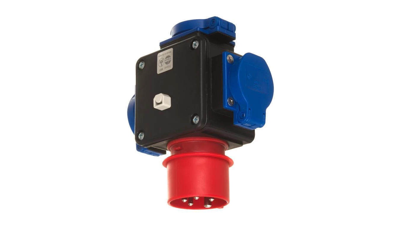 Rozdzielacz siłowy 20P3165, wtyk zasilający 3P+N+Z 400V 16A, 6h, 3 gniazda 2P+Z 230V 16A