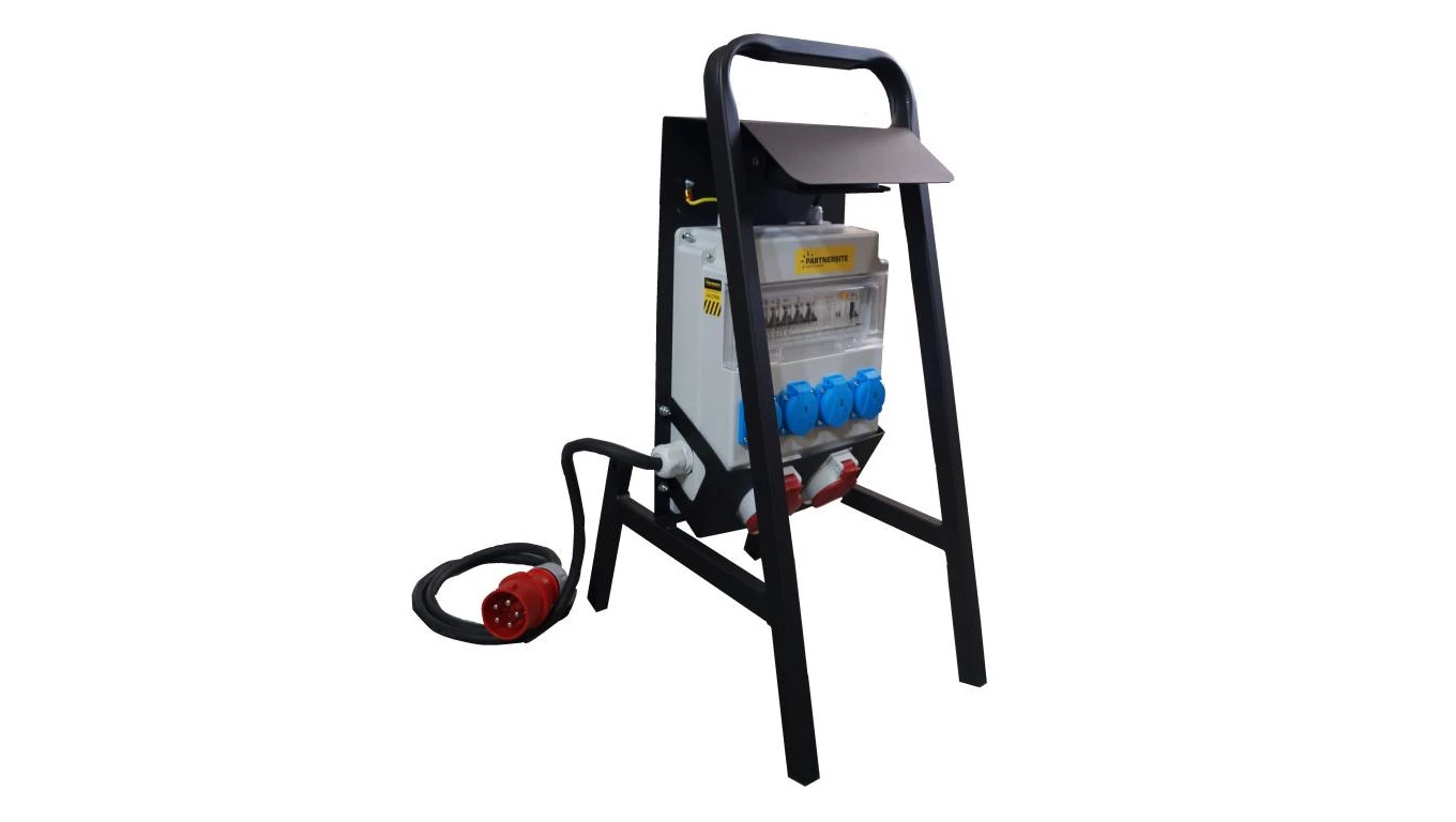 Rozdzielnica budowlana ERB32R3 z oświetleniem, na stojaku, IP54, gniazda: 2x CEE 32A, 4x GS 230V