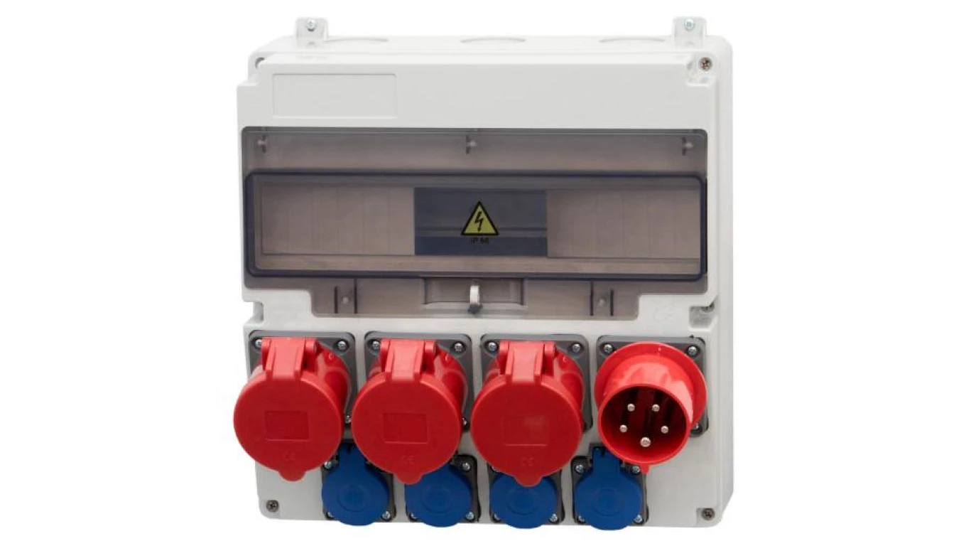Rozdzielnica LAGO 17M - gniazda proste 3x16A 5p, 4x230V, wtyczka odbiornikowa 32A 5p /17 modułów/