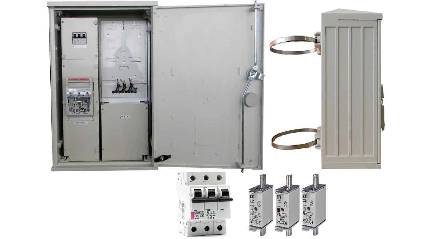 Rozdzielnica licznikowa, złącze pomiarowe TAURON na słup + listwa zaciskowa ZP40x60-1P3F-0_LZ-RB_0M-S