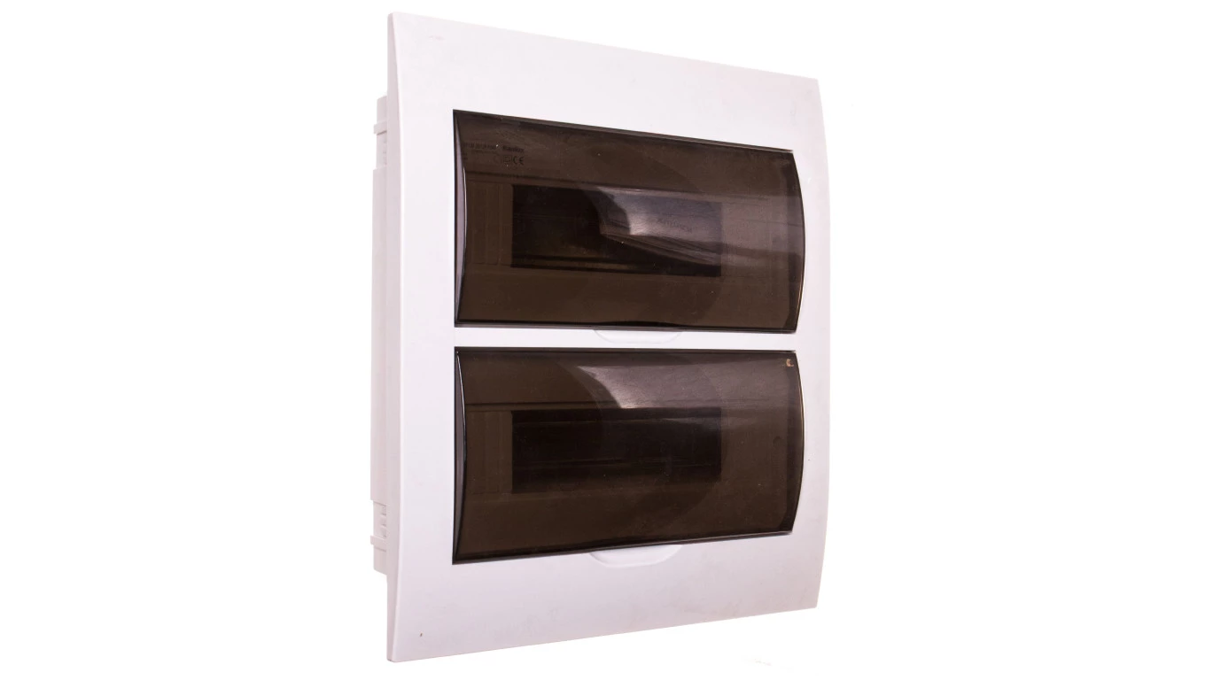 Rozdzielnica modułowa tworzywo 2x12 podtynkowa IP40 IK06 N+PE II klasa drzwi transparentne szare DB212F 2X12P/FMD biały 3845