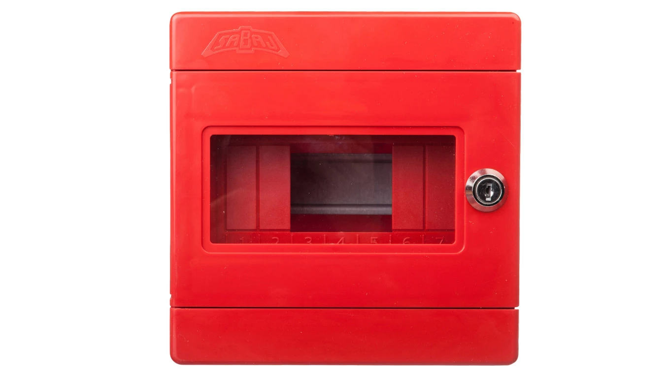 Rozdzielnica natynkowa modułowa 7 modułów IP44 180X180X100, czerwona z zamkiem i szybą, ALFA 3 Z