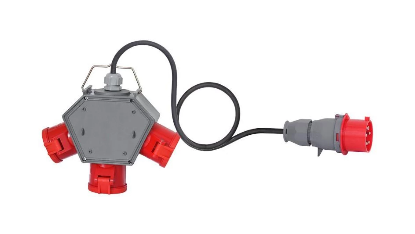 Rozdzielnica POLYBOX - gniazda 3x32A 5p, przewód OPD 5x4mm2 - 10m z wtyczką 32A 5p