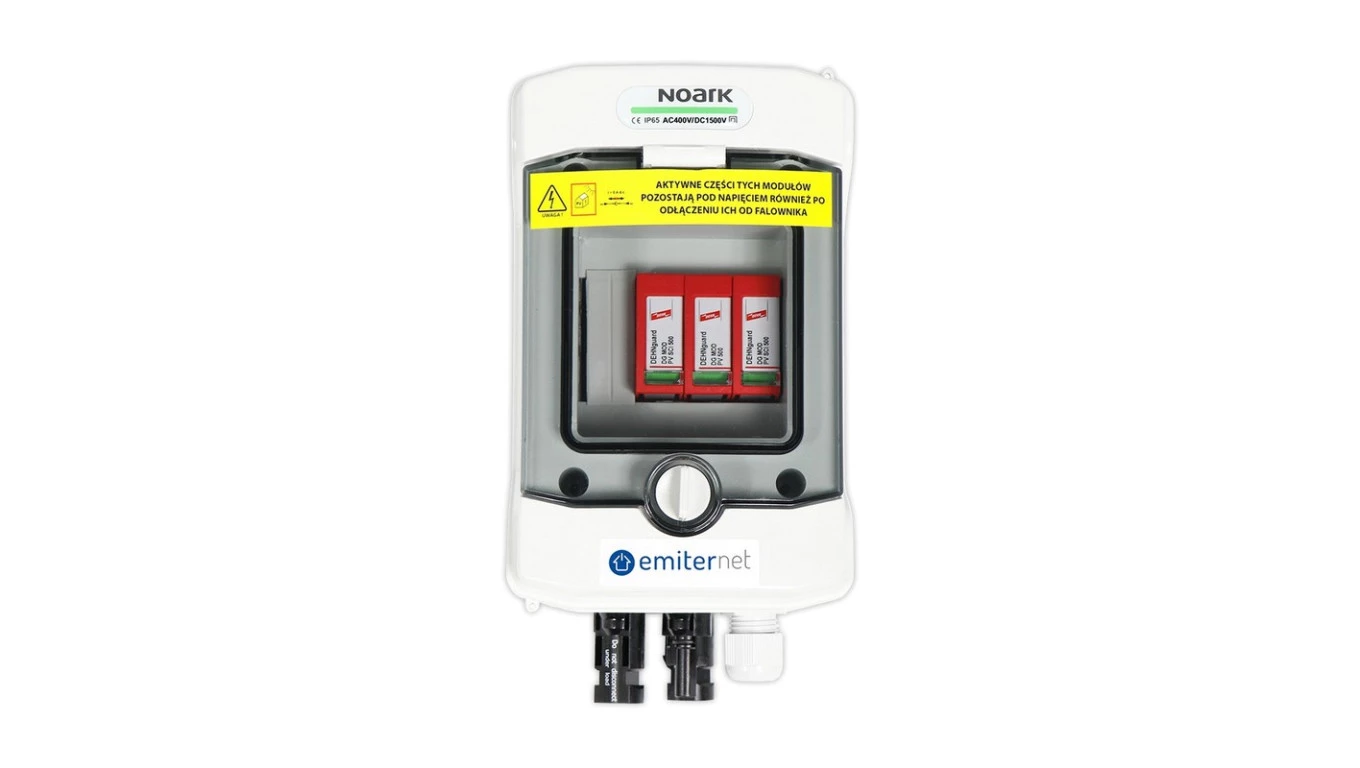 Rozdzielnica hermetyczna EMITER z ogranicznikiem przepięć DC Dehn 1000V typu 2, 1x łańcuch PV, 1x MPPT o numerze katalogowym EM-1_DC w kategorii Obudowy, Zabezpieczenie instalacji. Produkt wyprodukowany przez markę EMITER, seria ZABEZPIECZENIE INSTALACJI.