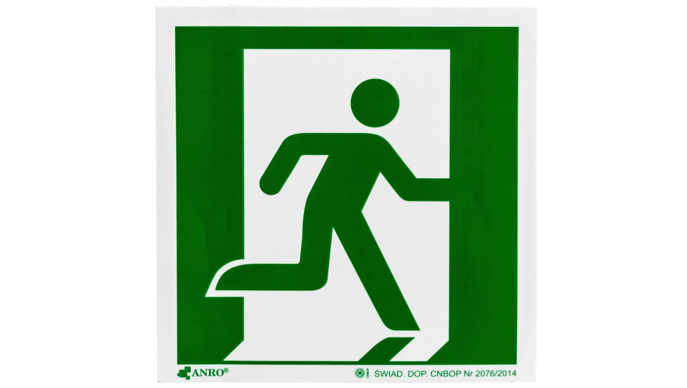 Samoprzylepna tabliczka ostrzegawcza /Drzwi ewakuacyjne (w prawo) 150x150/ IE/002/F/FS