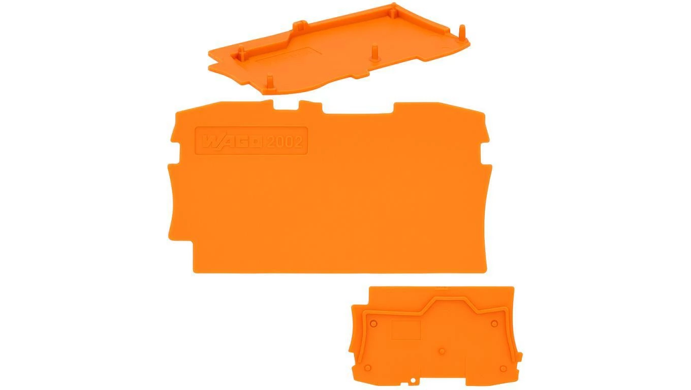 Ścianka końcowa/wewnętrzna grubość 0,8 mm pomarańczowa o numerze katalogowym 2002-1292 w kategorii Płytki skrajne do złączek sprężynowych, Złączki listwowe sprężynowe. Produkt wyprodukowany przez markę WAGO, seria TOPJOB® S.