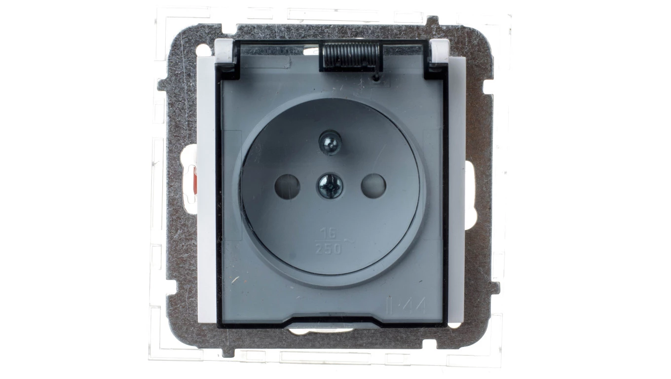 Sentia Gniazdo bryzgoszczelne z/u IP44 z klapką transparentną z przesłonami białe 1466-10