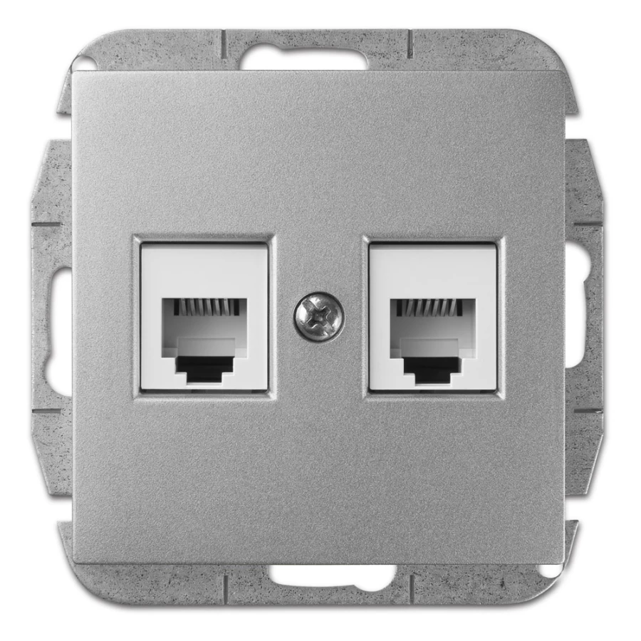 Sentia Gniazdo telefoniczne podwójne RJ11 srebrny połysk 1451-56