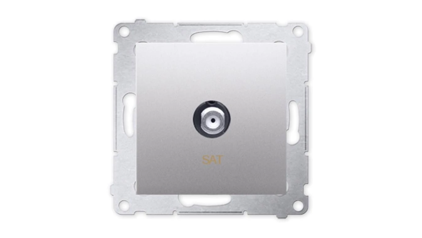 Gniazdo SAT pojedyncze, srebrny mat Simon54 o numerze katalogowym DASF1.01/43 w kategorii Gniazda teleinformacyjne, multimedialne, Łączniki i gniazda instalacyjne. Produkt wyprodukowany przez markę KONTAKT-SIMON, seria SIMON 54.