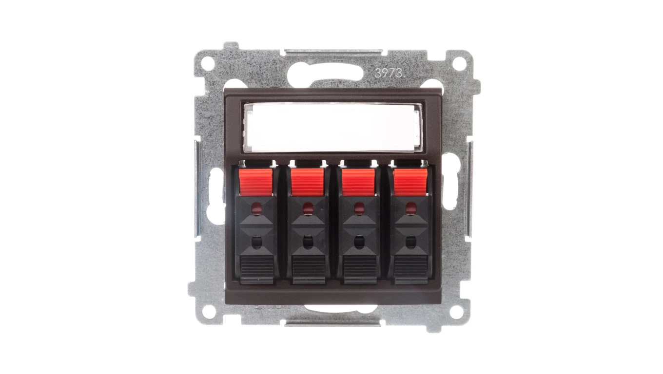 Simon 54 Gniazdo głośnikowe poczwórne z polem opisowym brąz mat DGL34.01/46