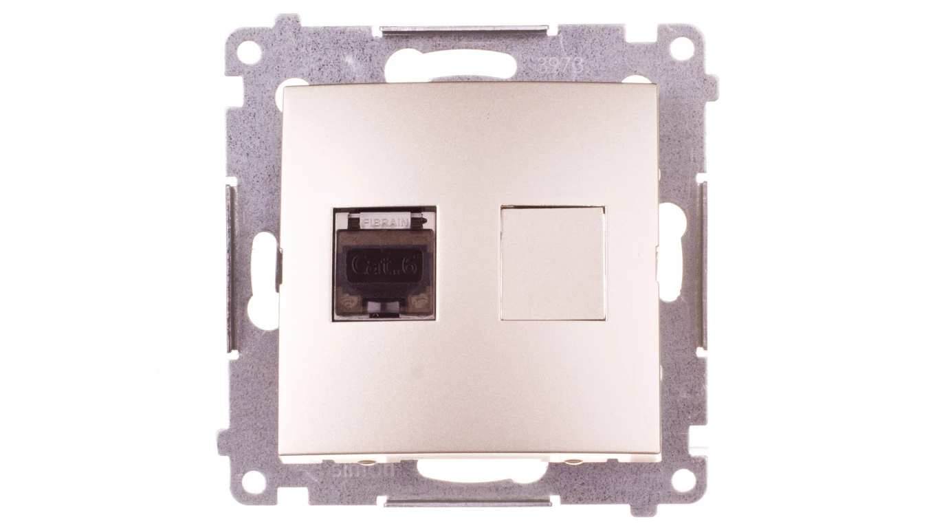Simon 54 Gniazdo komputerowe pojedyncze RJ45 kat.6 ekranowane z przesłoną złoty mat D61E.01/44
