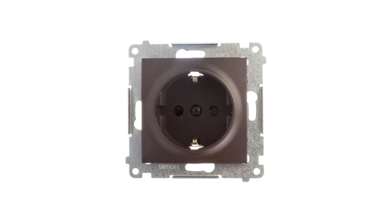 Simon 54 Gniazdo pojedyncze SCHUKO z/u 16A IP20 z przesłoną torów brąz mat DGSz1Z.01/46