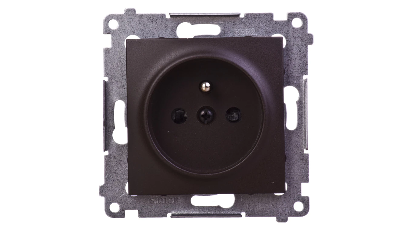Simon 54 Gniazdo pojedyncze z/u 16A IP20 z przesłoną torów brąz mat DGZ1Z.01/46