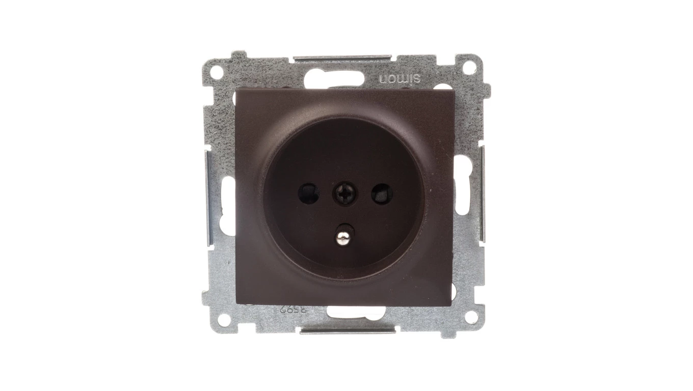 Simon 54 Gniazdo pojedyncze z/u 16A IP20 z przesłoną torów, szybkozłącza, brąz mat DGZ1CZ.01/46
