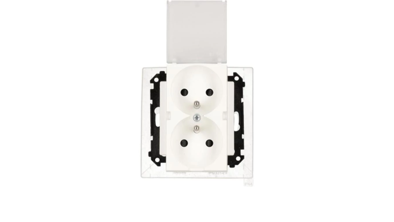 Simon 55 Gniazdo podwójne do wersji IP44 z uszczelką (moduł), szybkozłącza. Klapka transparentna Biały mat TGZ2BMCZ.01/111A