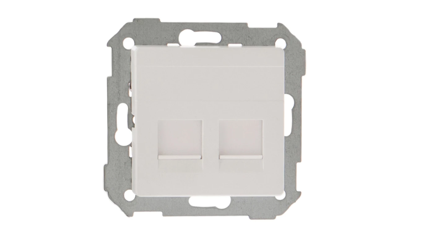Simon 82 Pokrywa gniazda teleinformatycznego podwójnego 2xRJ płaska z adapterem i przesłoną biała 82006-30