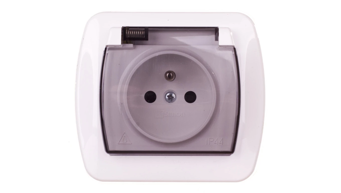 Simon Akord Gniazdo bryzgoszczelne z/u IP44 z przesłoną torów i klapką dymną białe AGZ1Bze/11a