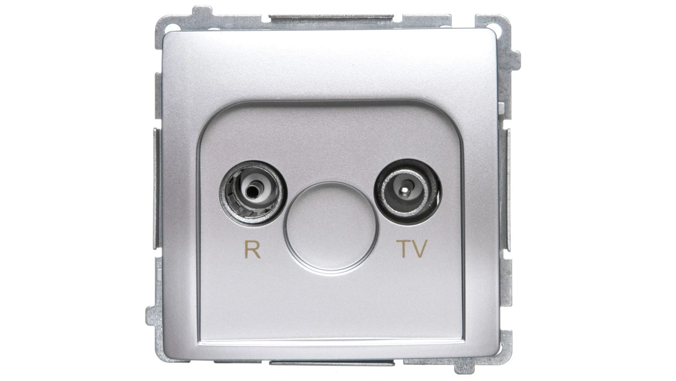 Simon Basic Gniazdo antenowe R-TV przelotowe tłumienie 10 dB srebrny mat BMZAP10/1.01/43