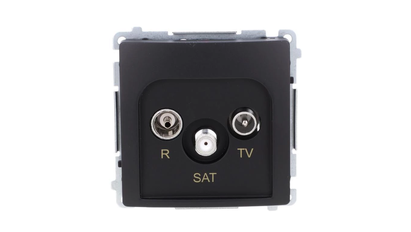 Simon Basic Gniazdo antenowe R-TV-SAT przelotowe (moduł), 1x wejście: 5 MHz–2,4 GHz czarny BMZAR-SAT10/P.01/49