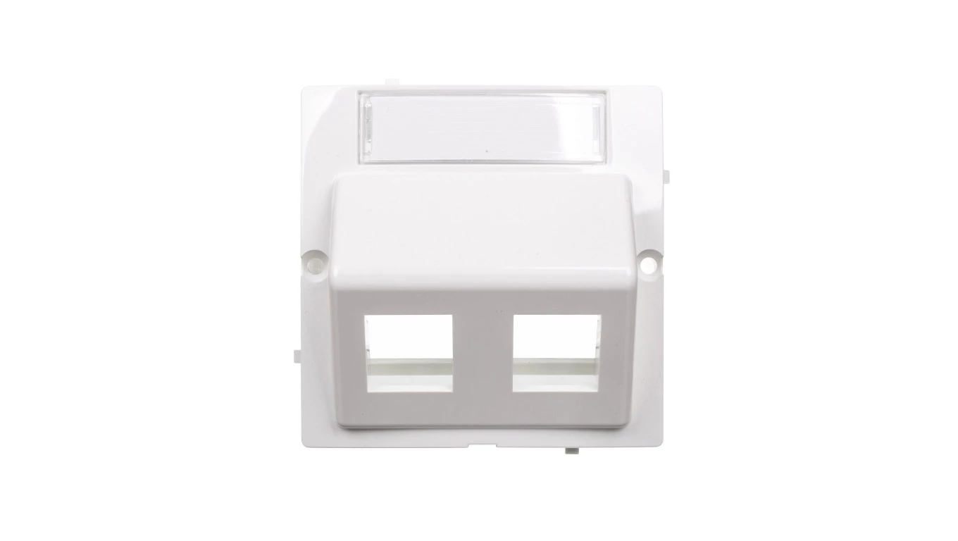 Simon Basic Pokrywa gniazda teleinformatycznego podwójnego RJ skośna z polem opisowym biała BMGKS2P/11