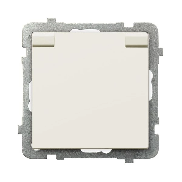 SONATA Gniazdo bryzgoszczelne z/u IP44 klapka ecru GPH-1RZ/m/27/w