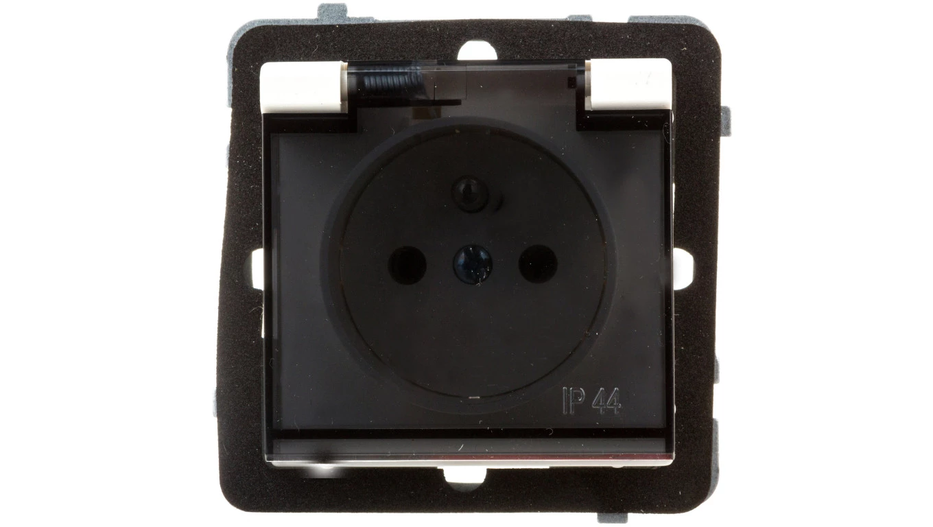 SONATA Gniazdo bryzgoszczelne z/u IP44 klapka przezroczysta ecru GPH-1RZ/m/27/d