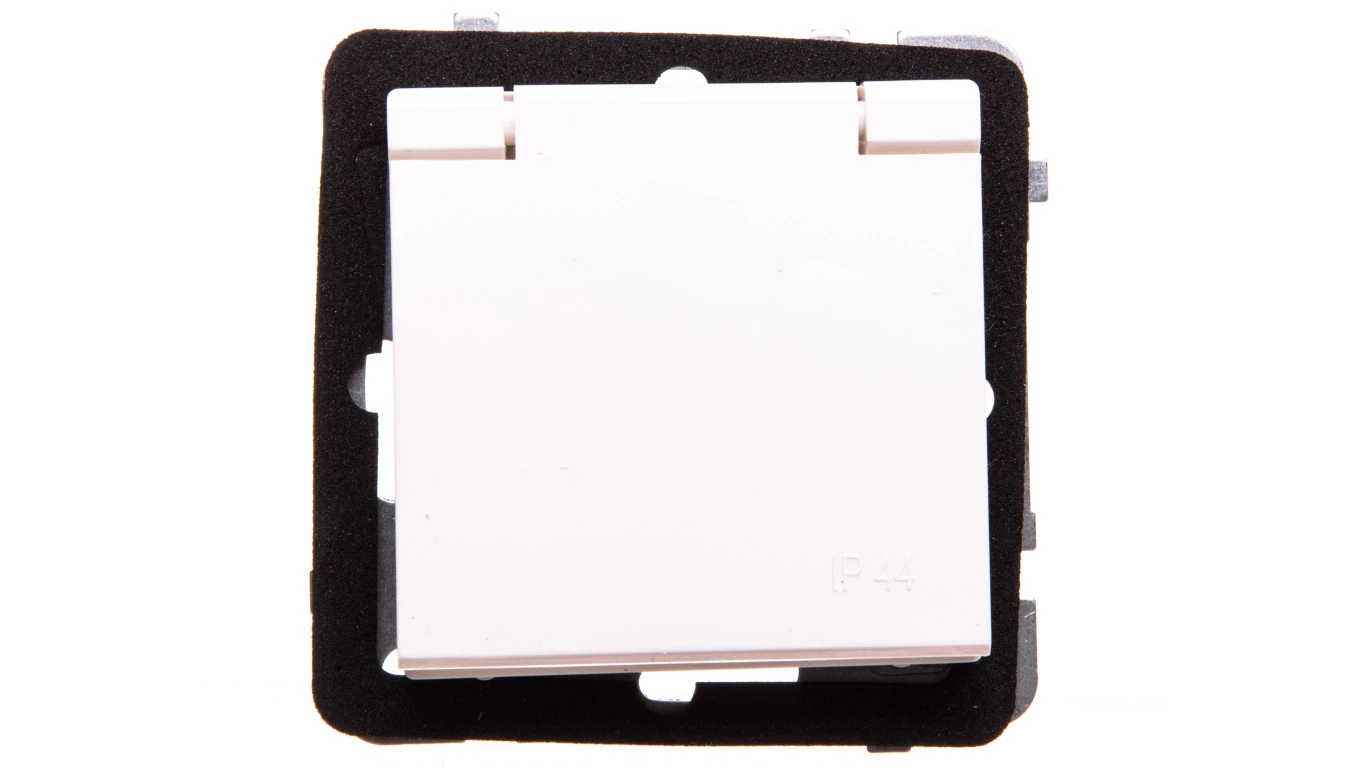 SONATA Gniazdo bryzgoszczelne z/u IP44 z przesłonami klapka ecru GPH-1RZP/m/27/w
