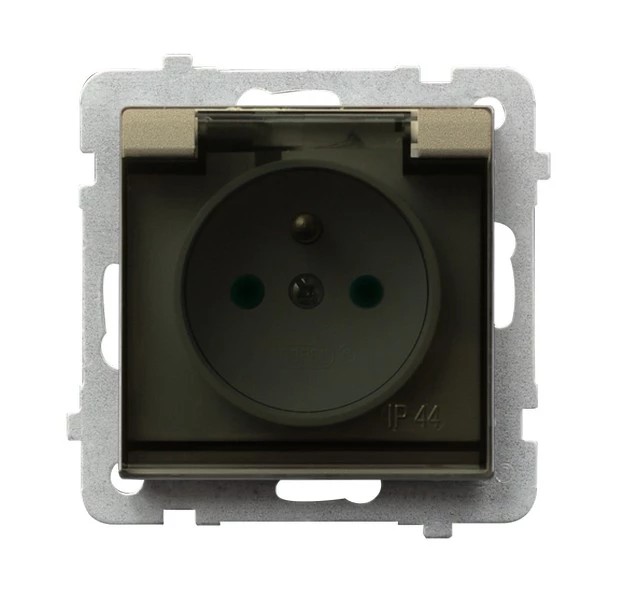 SONATA Gniazdo bryzgoszczelne z/u IP44 z przesłonami klapka przezroczysta szampański złotyGPH-1RZP/m/39/d