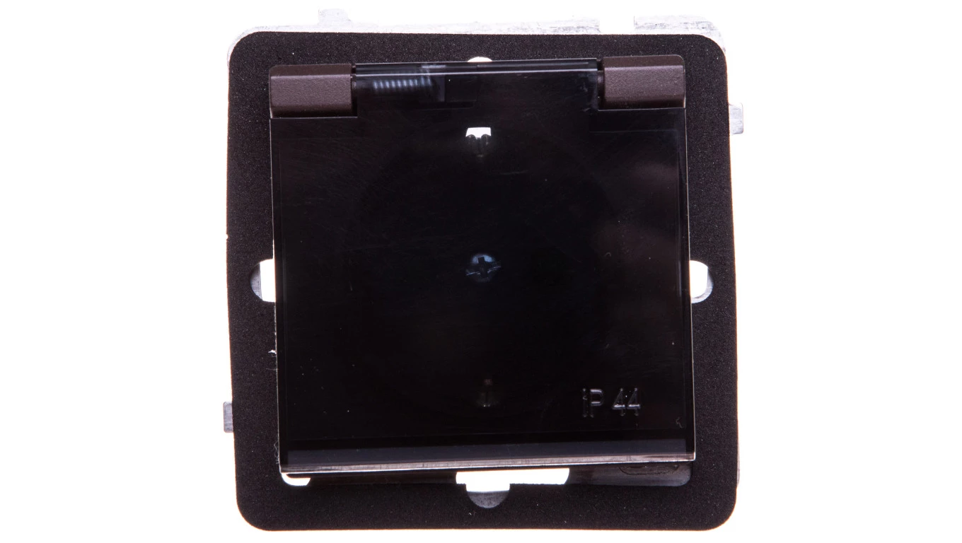 SONATA Gniazdo bryzgoszczelne z/u Schuko IP44 z przesłonami klapka przezroczysta czekoladowy metalikGPH-1RSP/m/40/d