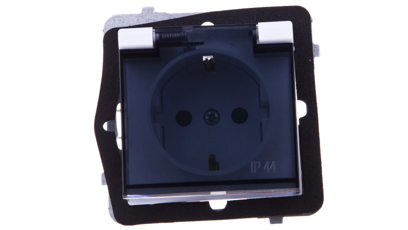 SONATA Gniazdo bryzgoszczelne z/u Schuko IP44 z przesłonami klapka przezroczysta białe GPH-1RSP/m/00/d