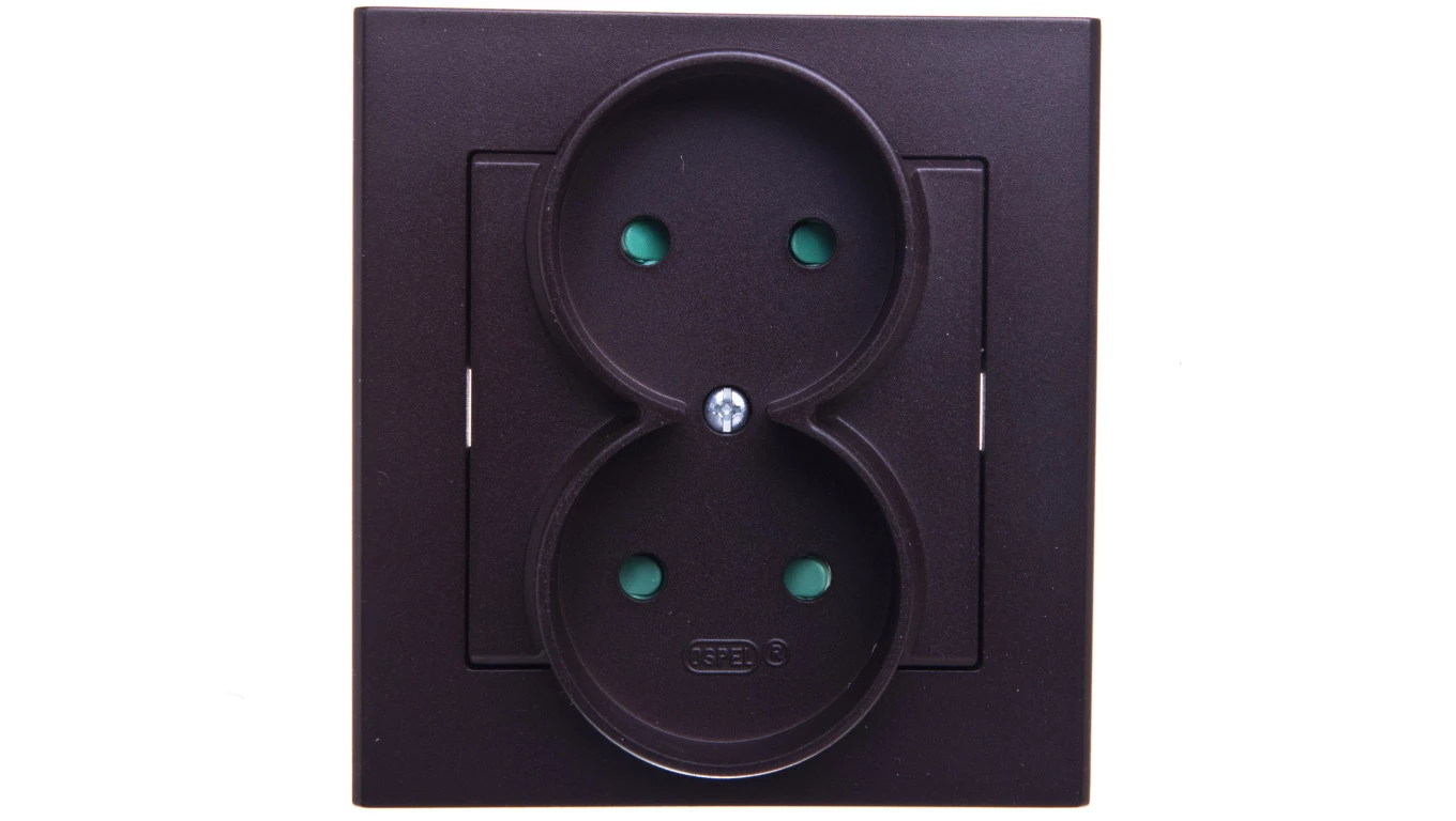 Gniazdo podwójne z przesłonami torów prądowych, czekoladowy metal SONATA o numerze katalogowym GP-2RP/40 w kategorii Gniazda podtynkowe, Gniazda instalacyjne. Produkt wyprodukowany przez markę OSPEL, seria SONATA.