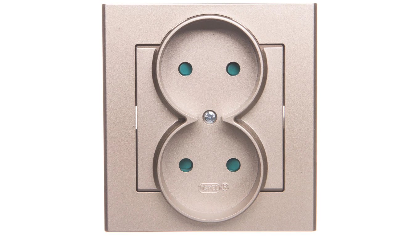 SONATA Gniazdo podwójne b/u z przesłonami szampański złoty GP-2RP/39