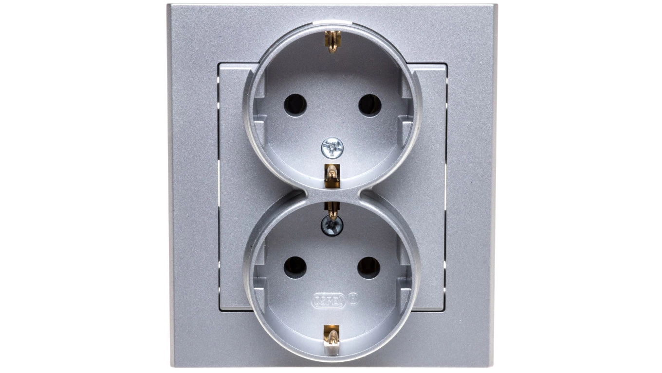 SONATA Gniazdo podwójne z/u Schuko srebro mat GP-2RS/38