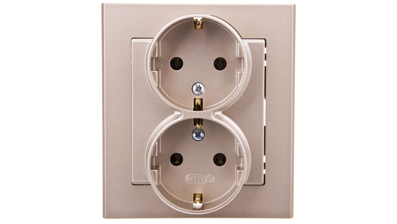 Gniazdo podwójne z uziemieniem schuko, szampański złoty SONATA o numerze katalogowym GP-2RS/39 w kategorii Gniazda podtynkowe, Gniazda instalacyjne. Produkt wyprodukowany przez markę OSPEL, seria SONATA.
