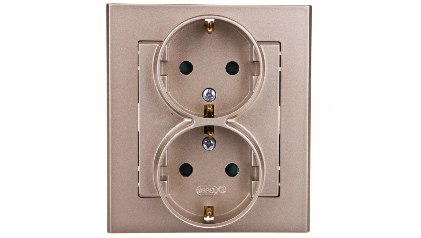 Gniazdo podwójne z uziemieniem schuko z przesłonami torów prądowych, szampański złoty SONATA o numerze katalogowym GP-2RSP/39 w kategorii Gniazda podtynkowe, Gniazda instalacyjne. Produkt wyprodukowany przez markę OSPEL, seria SONATA.