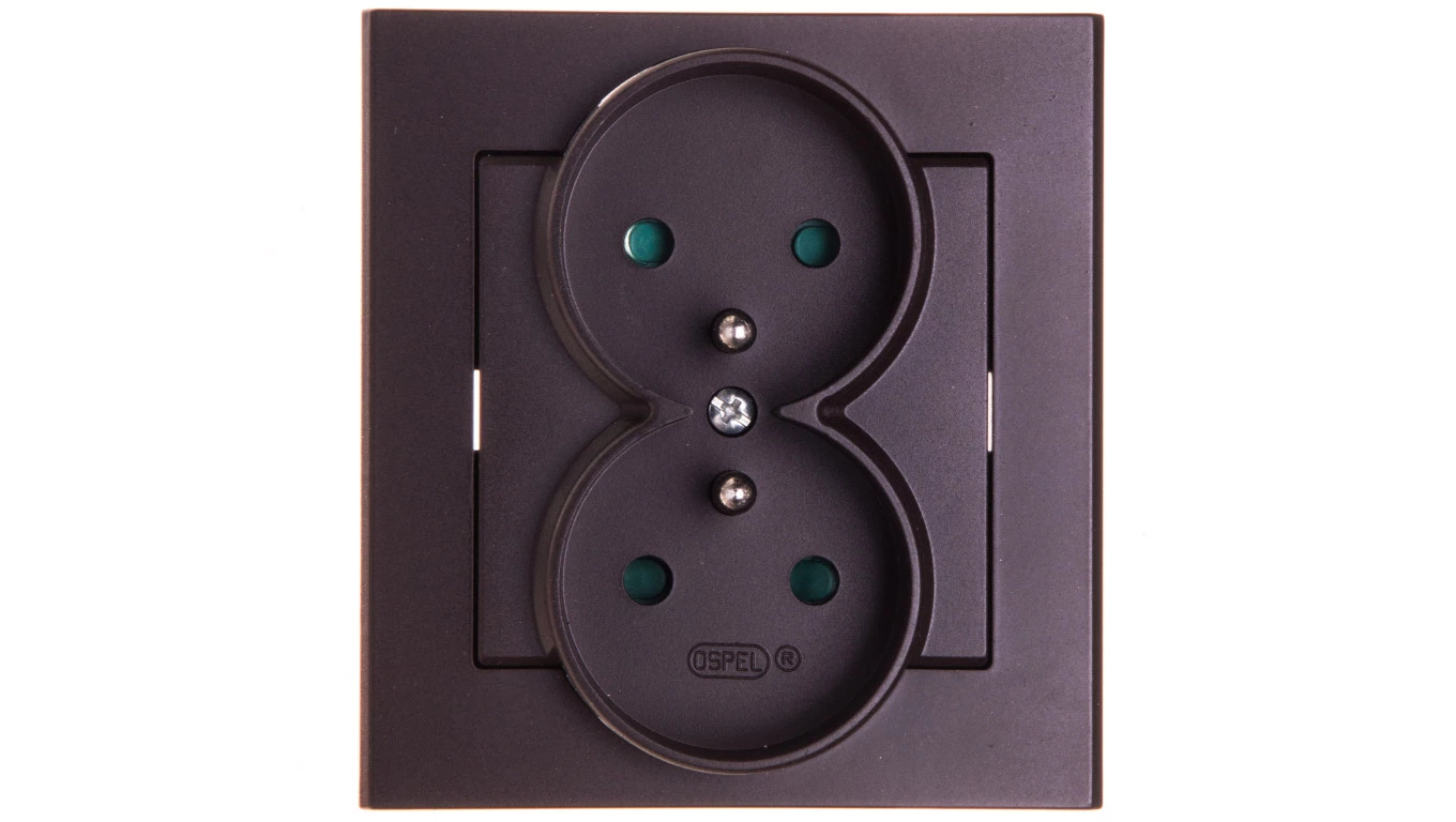 SONATA Gniazdo podwójne z/u z przesłonami czekoladowy metalik GP-2RZP/40