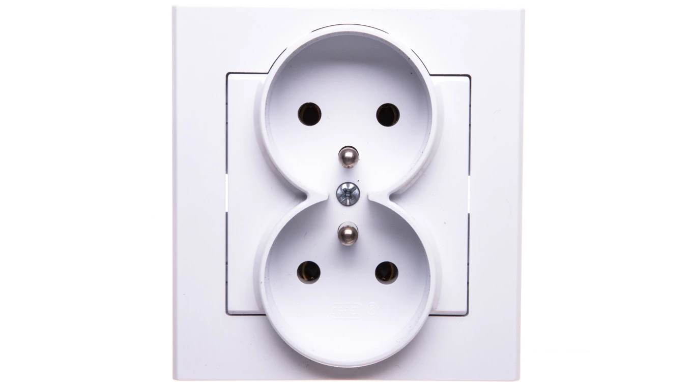 SONATA Gniazdo podwójne z uziemieniem kompletne z ramką biały mat GP-2RZ/75