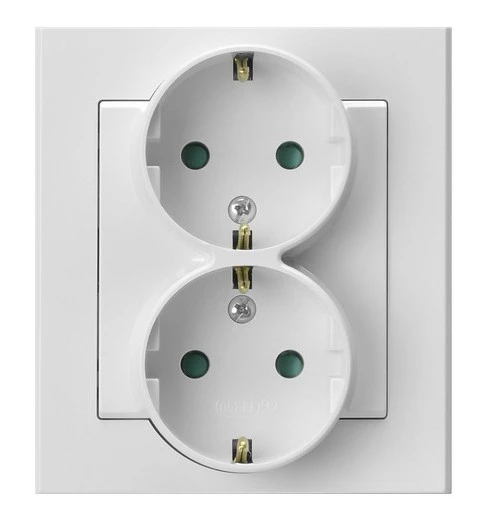 SONATA Gniazdo podwójne z uziemieniem schuko z przesłonami torów prądowych, kompletne z ramką biały mat GP-2RSP/75