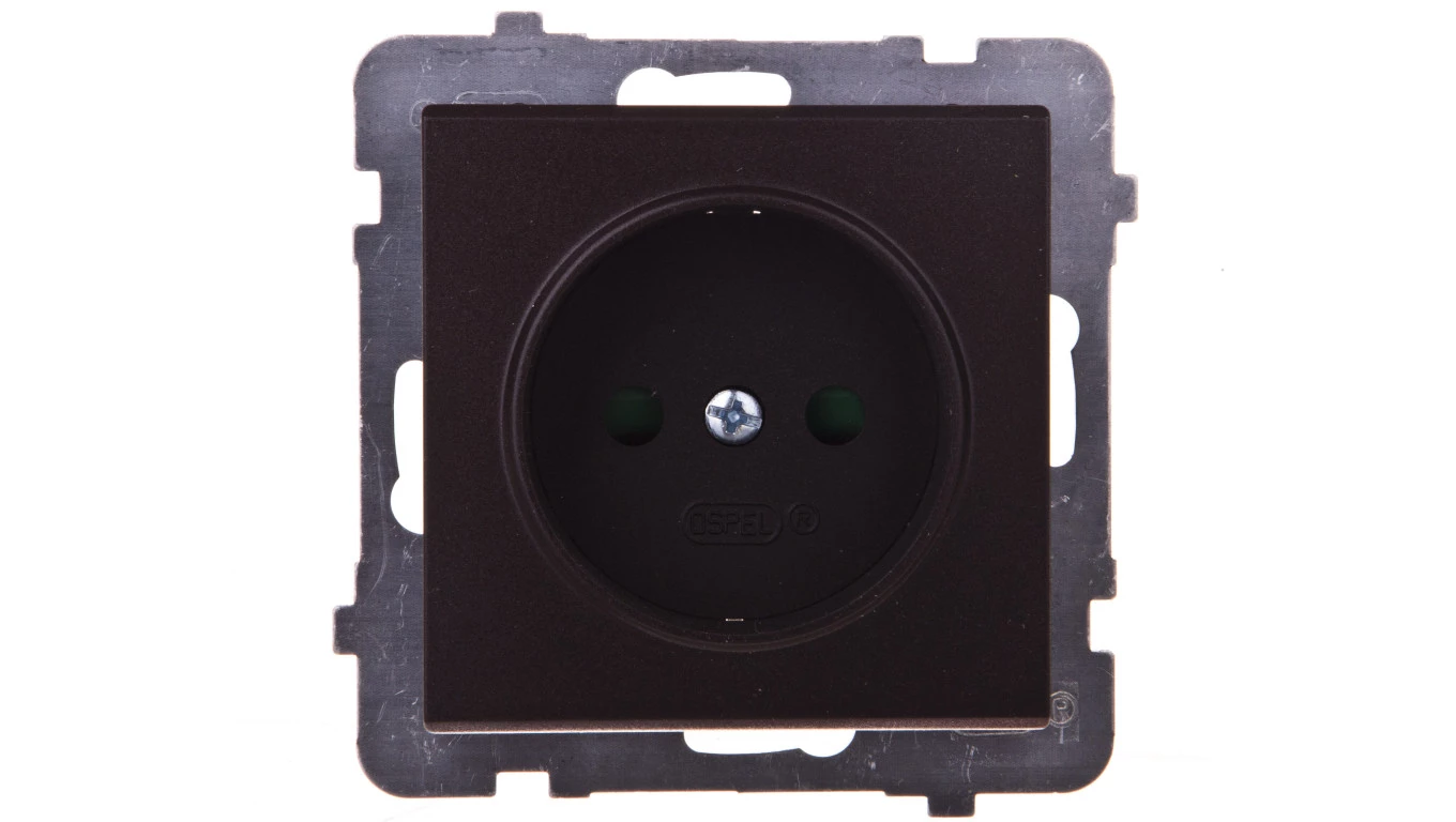 Gniazdo pojedyncze z przesłonami torów prądowych, czekoladowy metal SONATA o numerze katalogowym GP-1RP/M/40 w kategorii Gniazda podtynkowe, Gniazda instalacyjne. Produkt wyprodukowany przez markę OSPEL, seria SONATA.