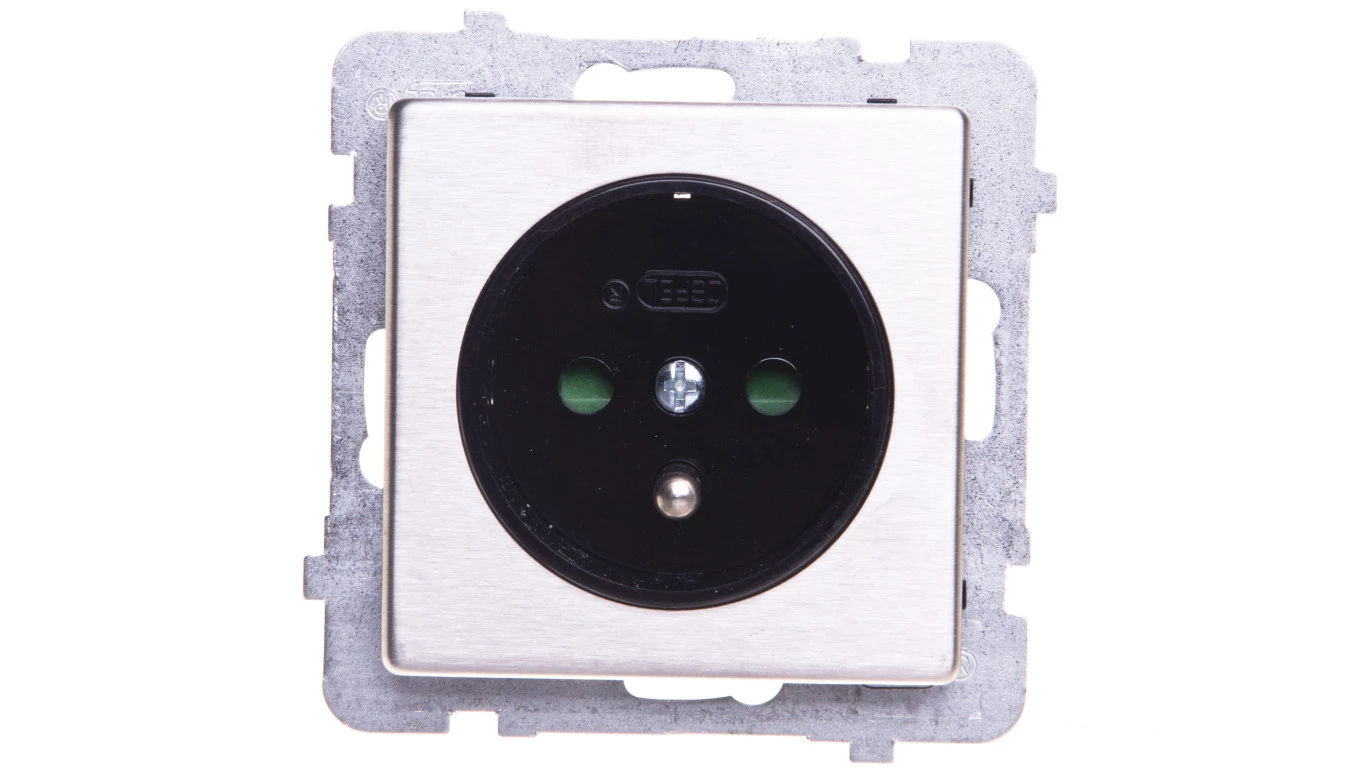 SONATA Gniazdo pojedyncze z/u z przesłonami stal inox GP-1RMZP/m/37