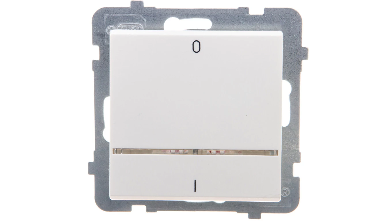 Łącznik dwubiegunowy z podświetleniem pomarańczowym, ecru SONATA o numerze katalogowym ŁP-11RS/M/27 w kategorii Łączniki podtynkowe wielobiegunowe, Łączniki wielobiegunowe. Produkt wyprodukowany przez markę OSPEL, seria SONATA.