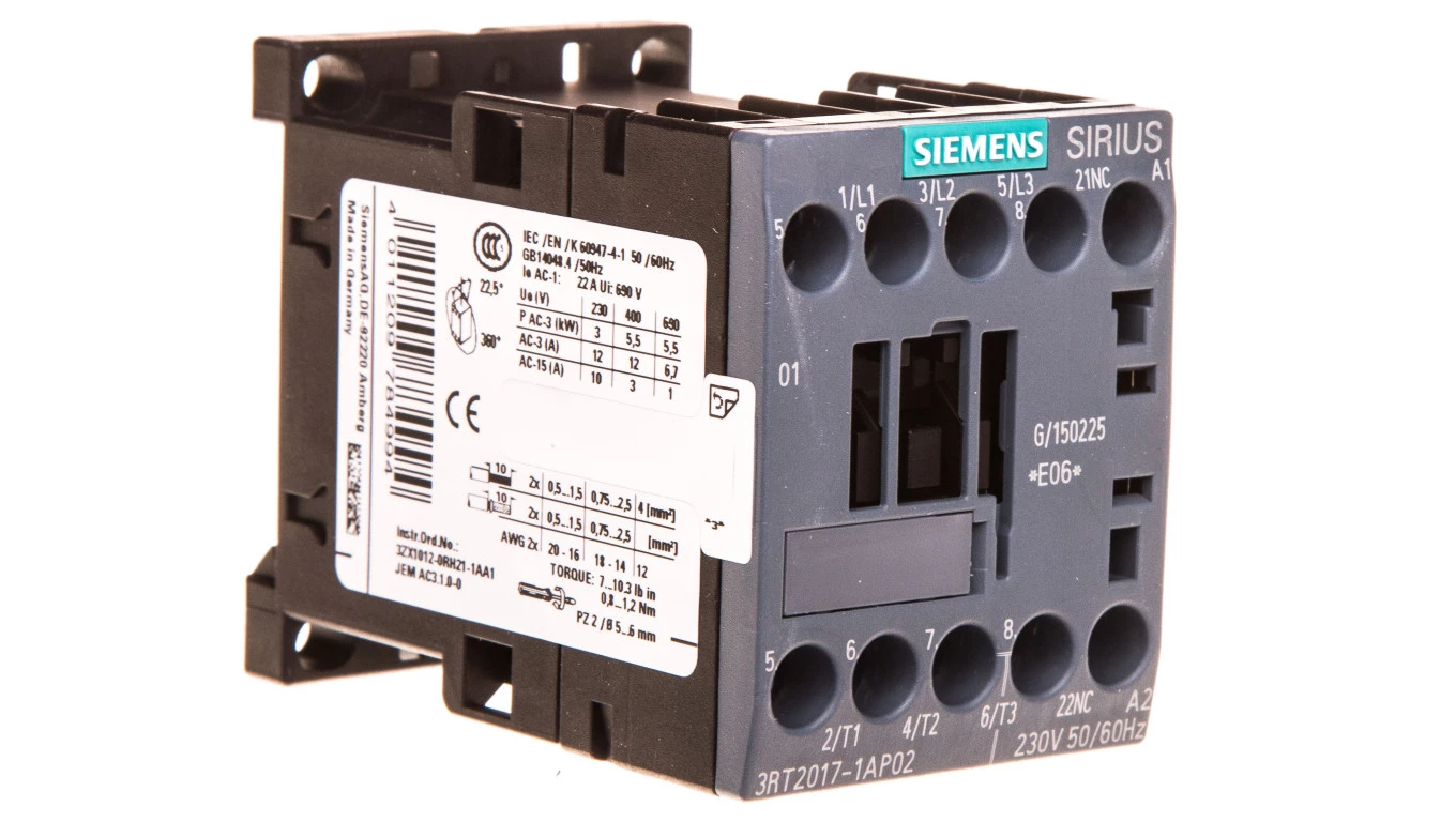 Stycznik mocy 12A 3P 230V AC 0Z 1R S00 3RT2017-1AP02