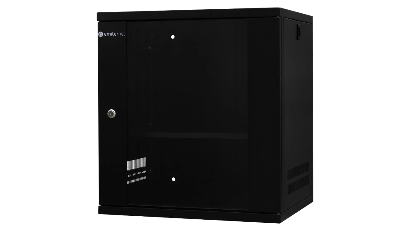 Szafa wisząca lekka niedzielona 19 12U, drzwi blacha/szkło, ściągane osłony boczne, 550×450×590 szer./gł./wys. mm RAL: 9004, w