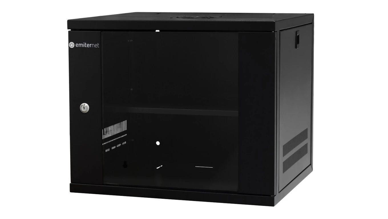 Szafa wisząca lekka niedzielona 19 9U, drzwi blacha/szkło, ściągane osłony boczne, 550×450×455 szer./gł./wys. mm RAL: 9004, w