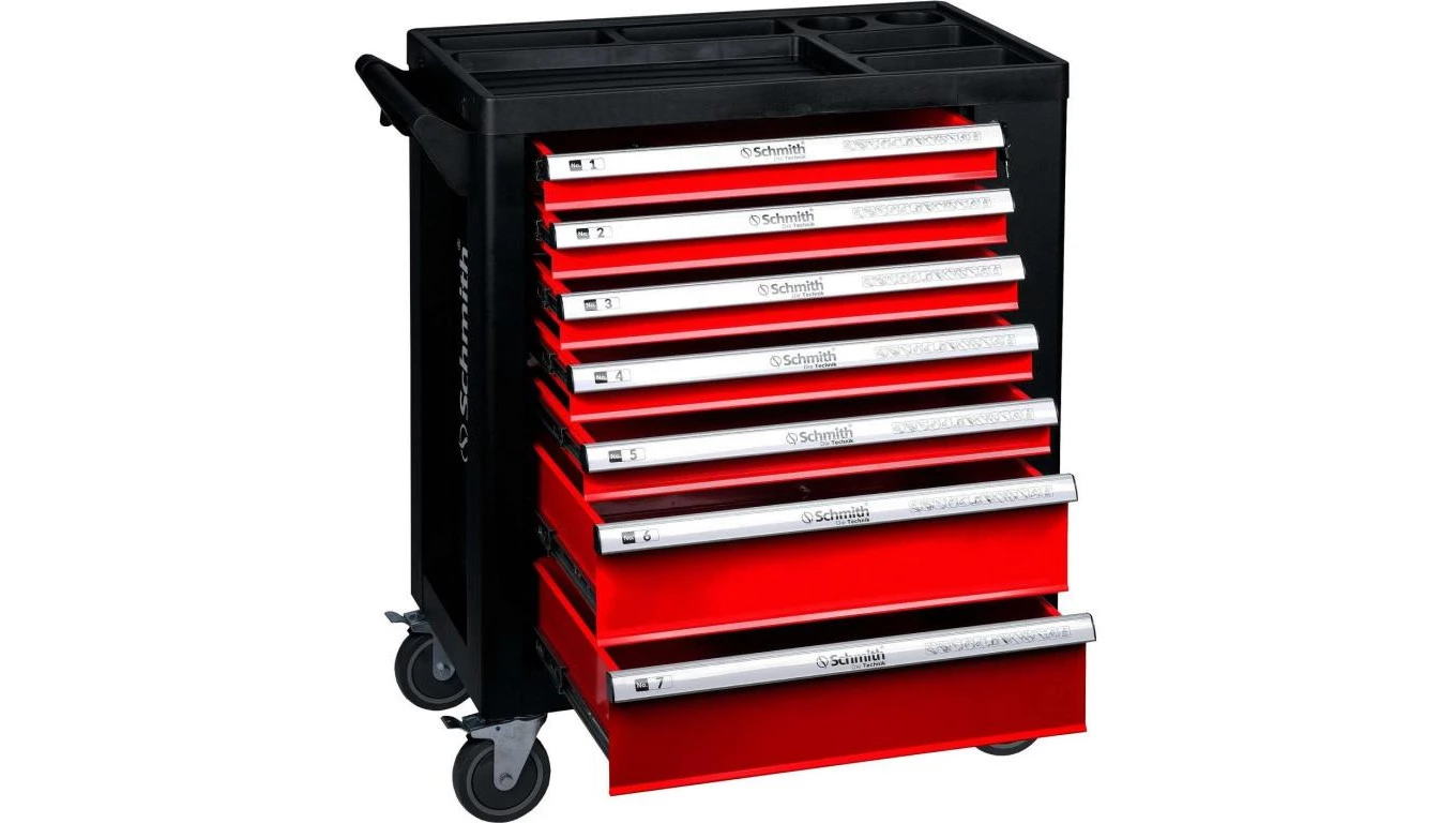 Szafka warsztatowa wózek narzędziowy 7 szuflad organizer z drzwiczkami bocznymi na kółkach Schmith