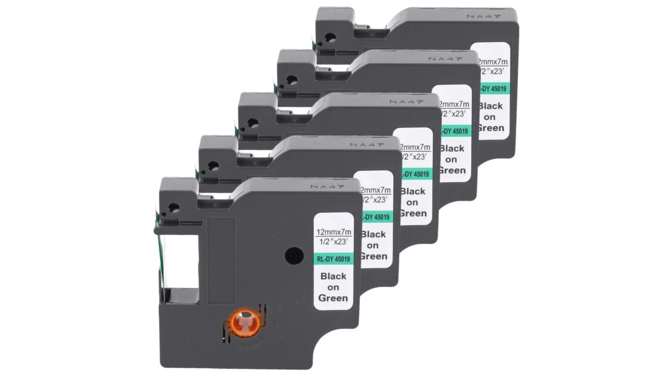Taśma 5x D1 45019 do drukarki DYMO 12mm 7m zielona taśma czarny nadruk