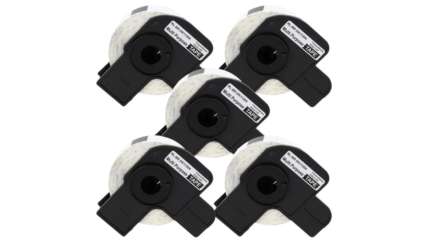 Taśma 5x DK11204 do drukarki Brother QL 17mm x 54mm biała taśma czarny nadruk