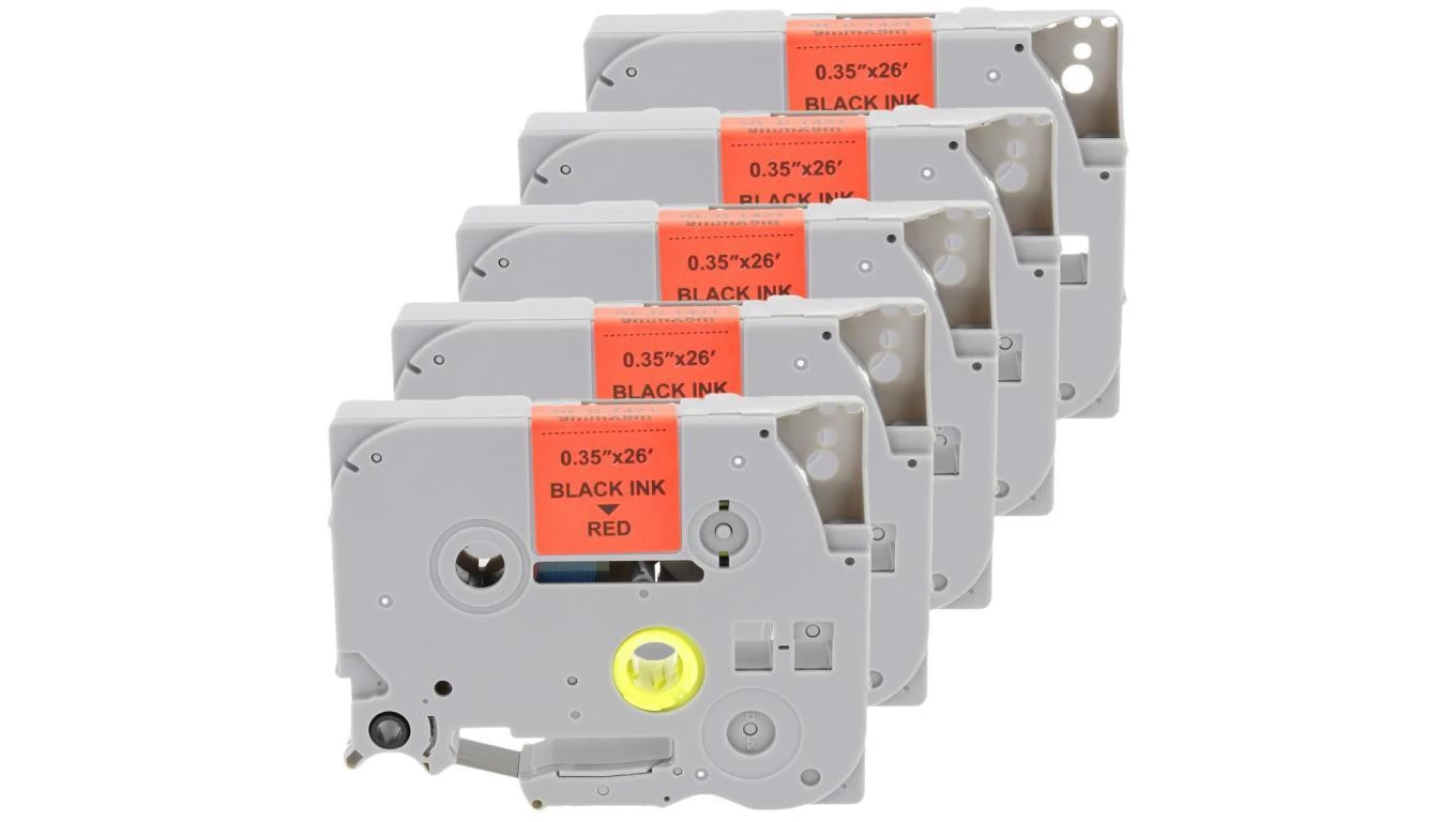 Taśma 5x Tze-421 do drukarki Brother 9mm 8m czerwona taśma czarny nadruk