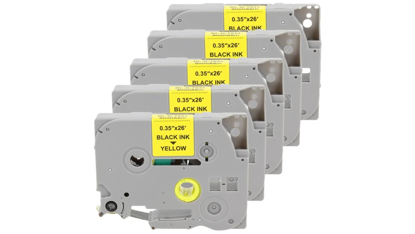 Taśma 5x Tze-621 do drukarki Brother 9mm 8m żółta taśma czarny nadruk
