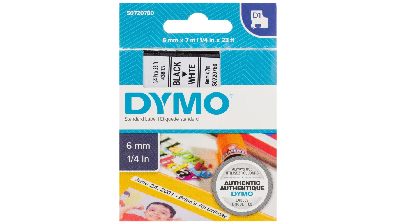 Taśma do drukarek D1 6mm x 7m czarny/biały S0720780